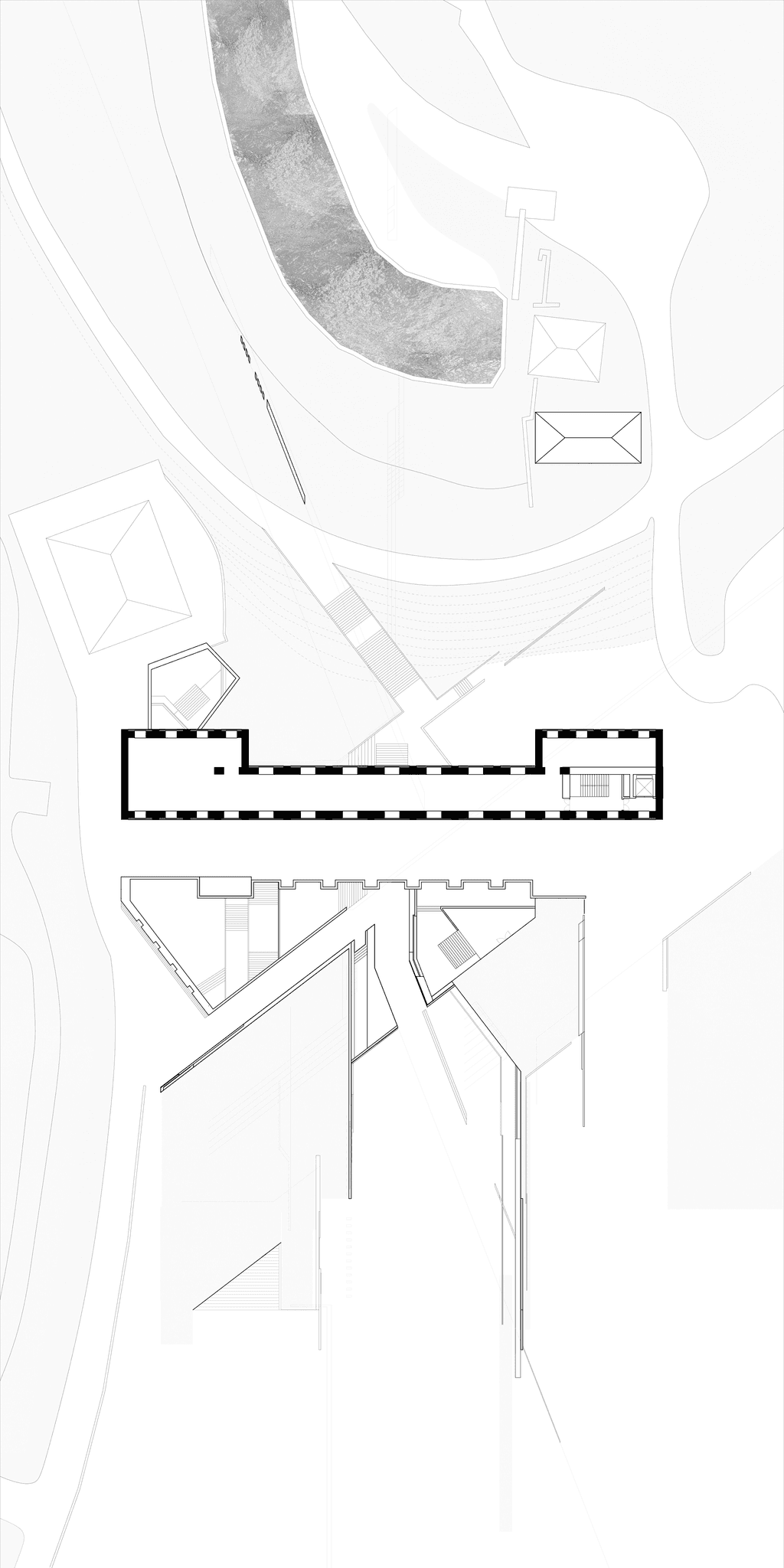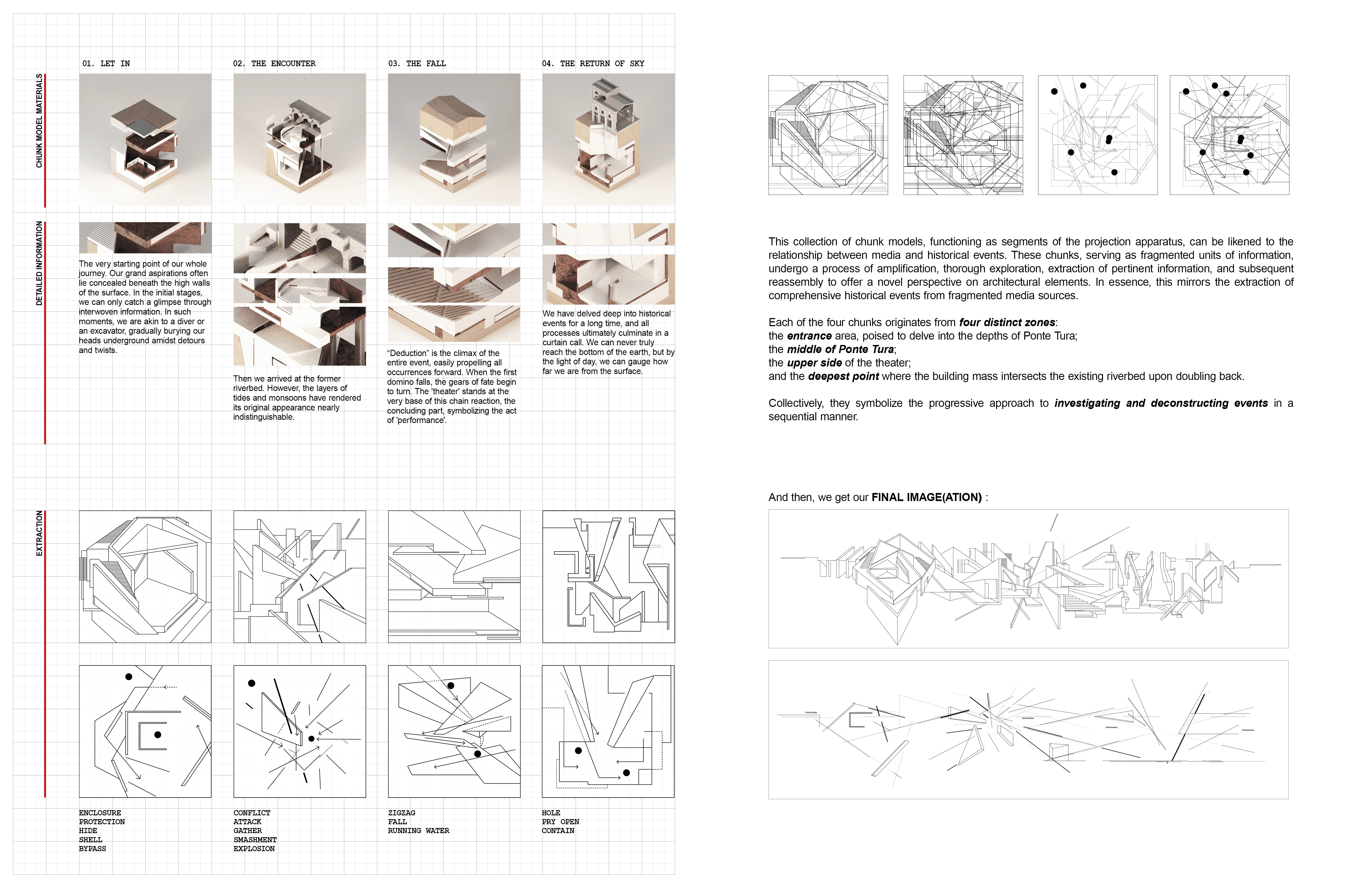 This project, situated in a former hydraulic engineering facility built under the Mussolini regime, functions as an art and media center, aiming to connect the complex relationships between history, architecture, and media through spatial forms and experiences. Through the arrangement of information and images, it ultimately raises the question: When we read architecture, what on earth are we looking at? And where exactly are we situated?